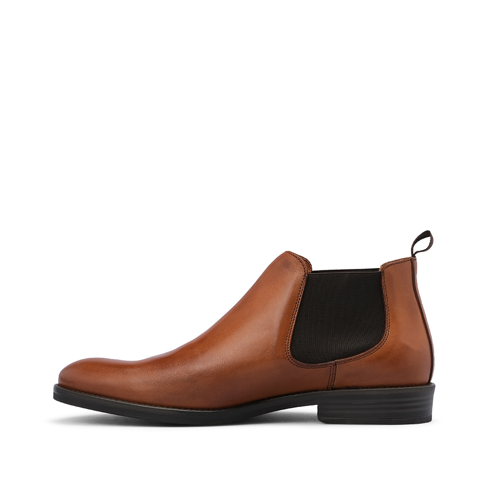Estes fantásticos botins de homem de pele com painel elástico oferecem a máxima conveniência.